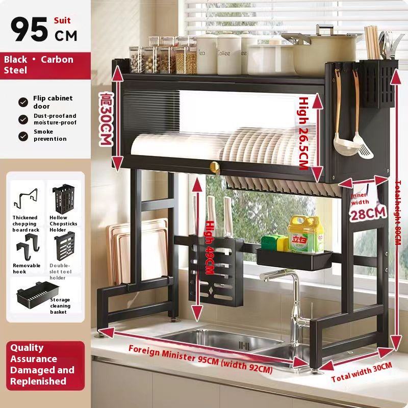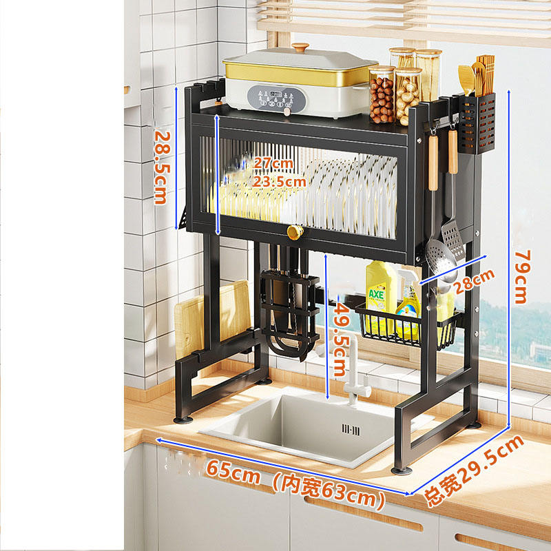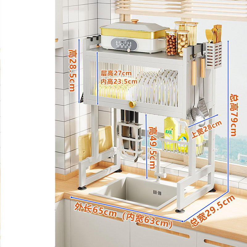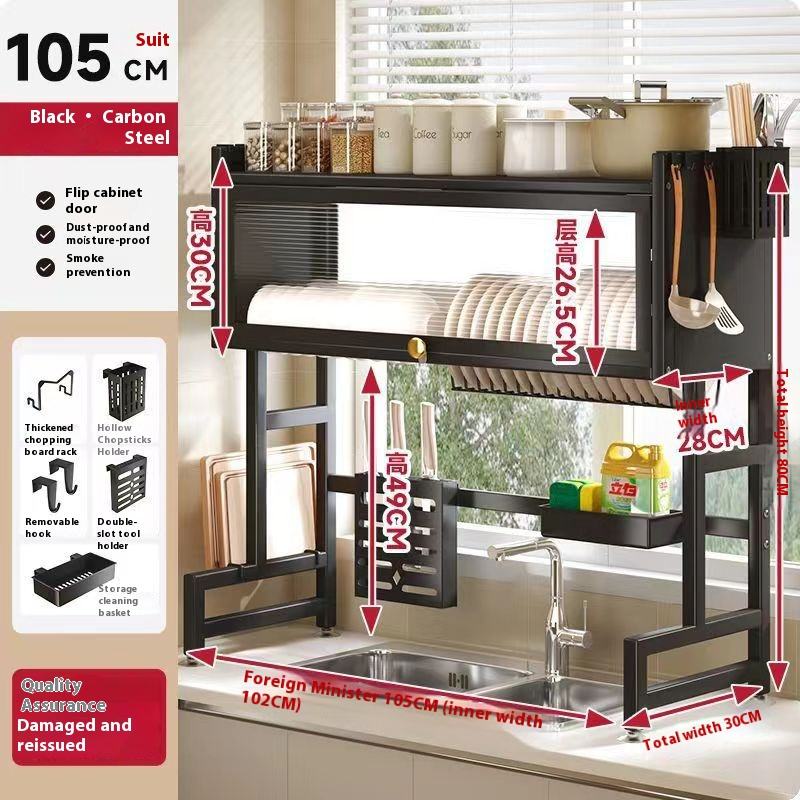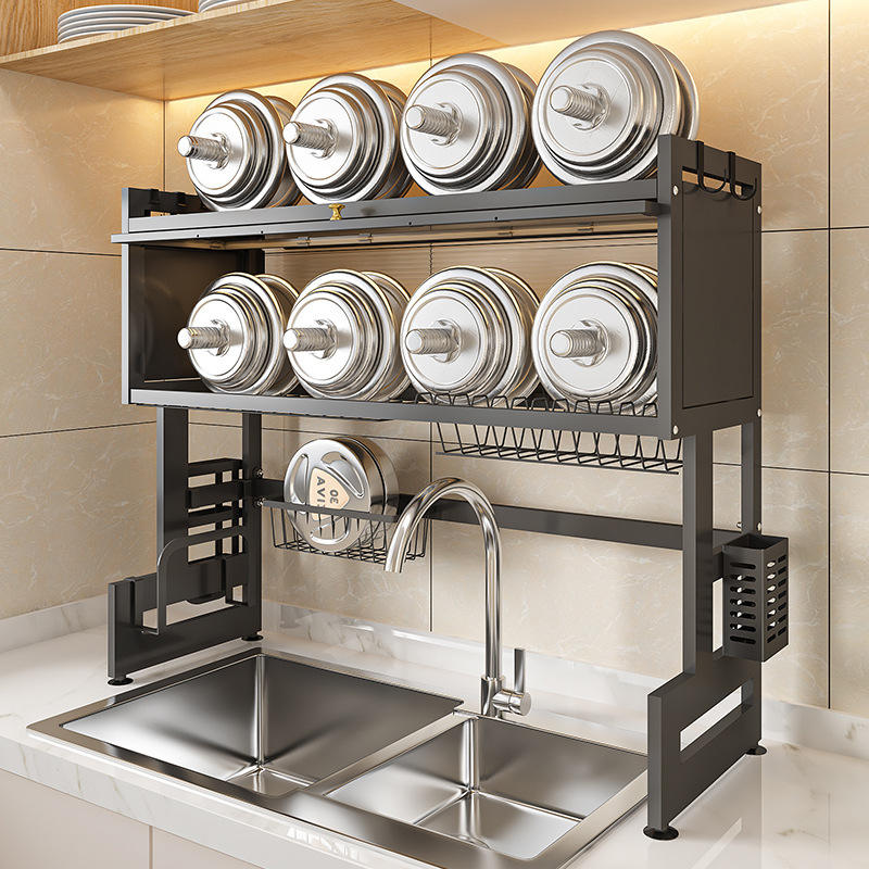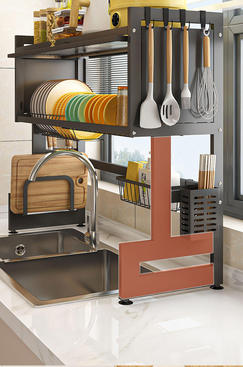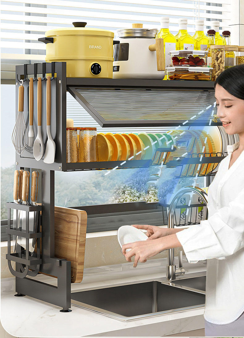 Countertop and over-sink dish racks, cutlery holders, drainboards, in-cabinet and wall-mounted dish organisers, plus bathroom accessories such as towel rails, hooks, shelves, shower caddies, soap dishes, dispensers, toothbrush holders, tissue holders and small under-sink or over-toilet storage units. Available in plastic, stainless steel, chrome-plated steel, aluminium, bamboo/wood and mixed-material designs.