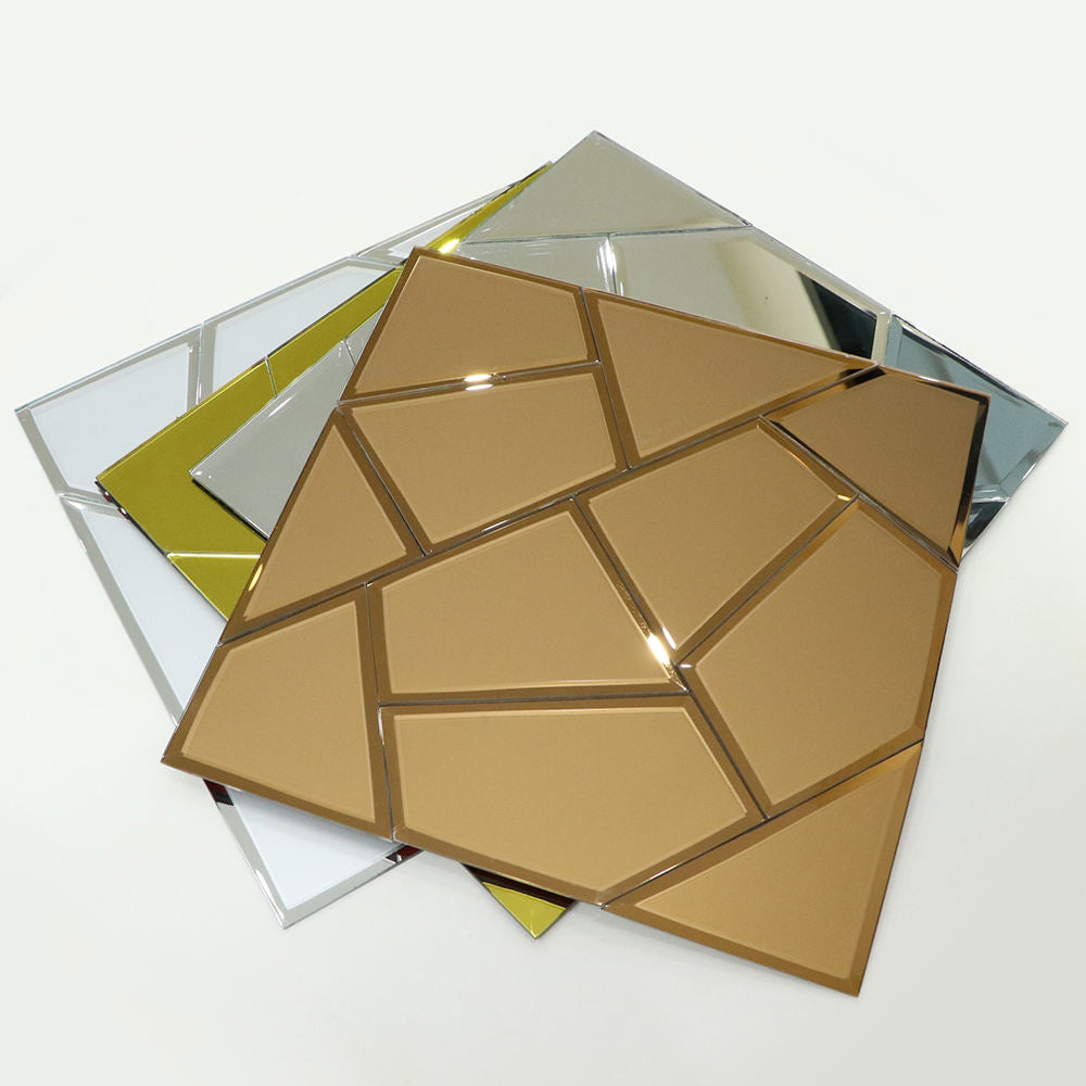 - Glass mosaics (clear, frosted, metallic, iridescent options)