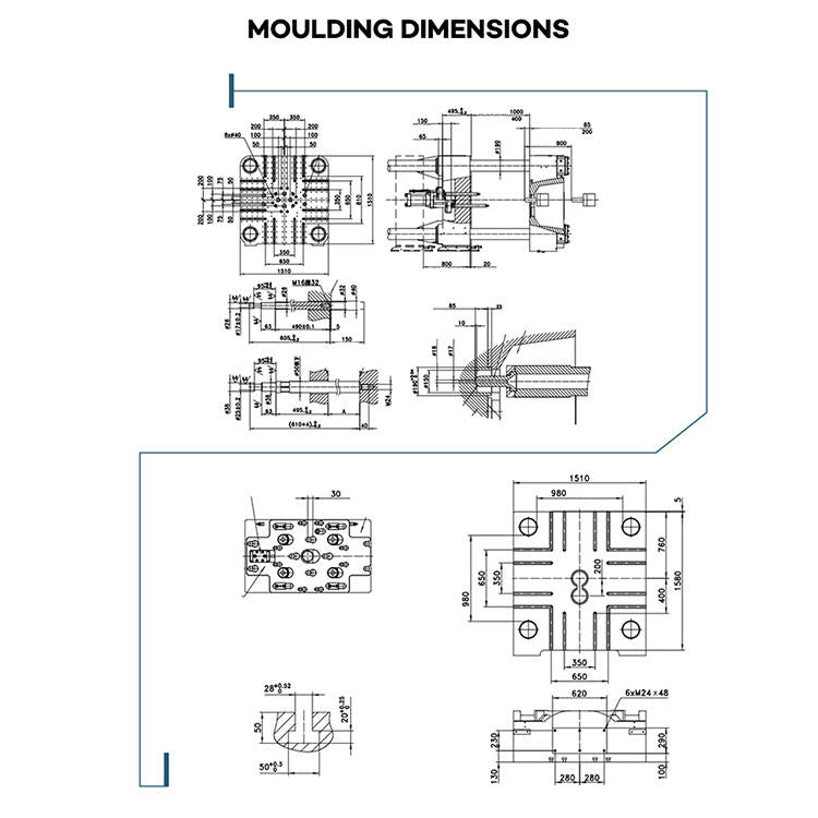 Clamping & Shot Range: Typical clamping force from ~80T to 800T+ (project-dependent). Shot size and screw diameter specified according to part size and resin type