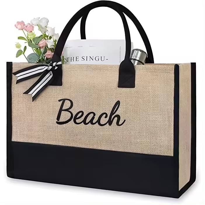Reusable tote and shopping bags in 100% cotton (lightweight to heavy canvas), jute and RPET/polyester fabrics; standard flat totes, gusseted shoppers, boxy supermarket styles, bottle and gift bags, foldable bags and compact “bag-in-pouch” designs. Options include long/short handles, inner pockets, zipper or button closures and mixed-material constructions (e.g. jute body with cotton/RPET trims).