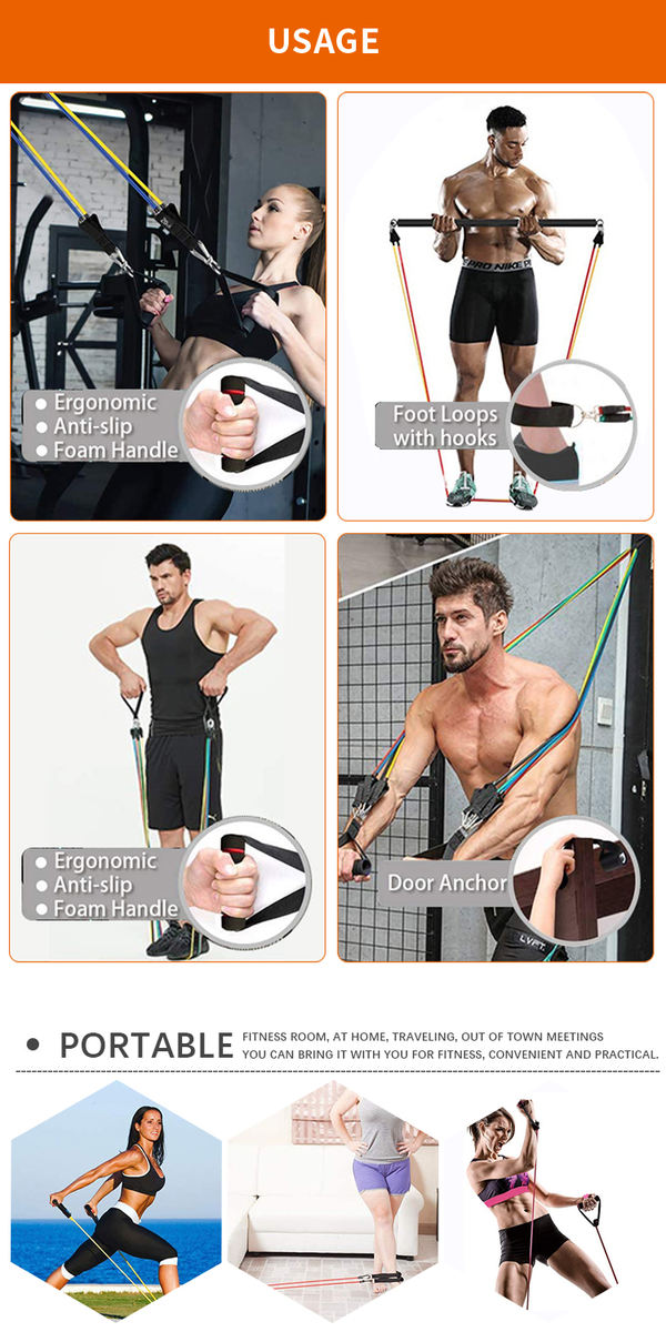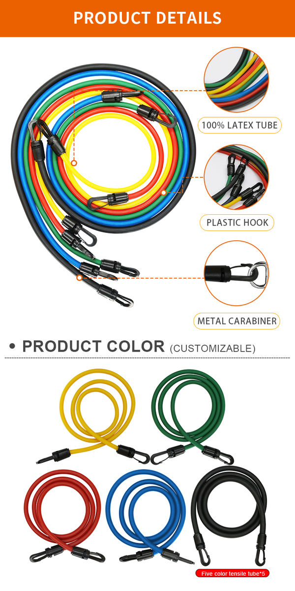 For bands: material (latex or latex-free), length, width and thickness; clearly defined resistance levels and tolerances; elongation and cycle-life expectations; handle, carabiner and stitching quality for tube systems; print durability for logos and resistance markings; packaging format for single items and multi-level sets.